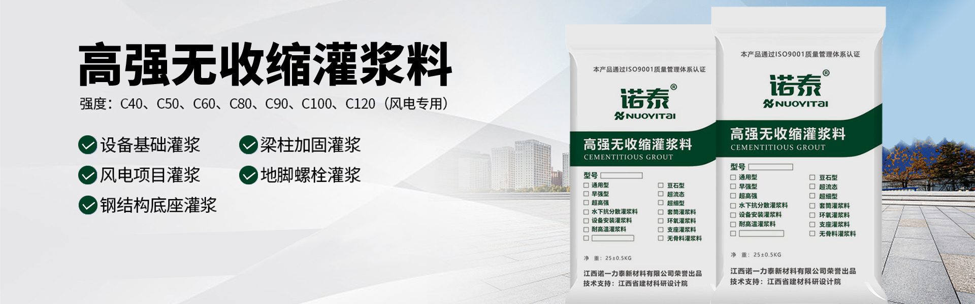 江西諾一力泰新材料有限公司位于江西宜春奉新縣,是專業(yè)從事灌漿料、水泥路面修補砂漿、抗裂砂漿、防水砂漿、保溫砂漿、隔聲砂漿、粘結(jié)砂漿等砂漿系列產(chǎn)品生產(chǎn)銷售的廠家。